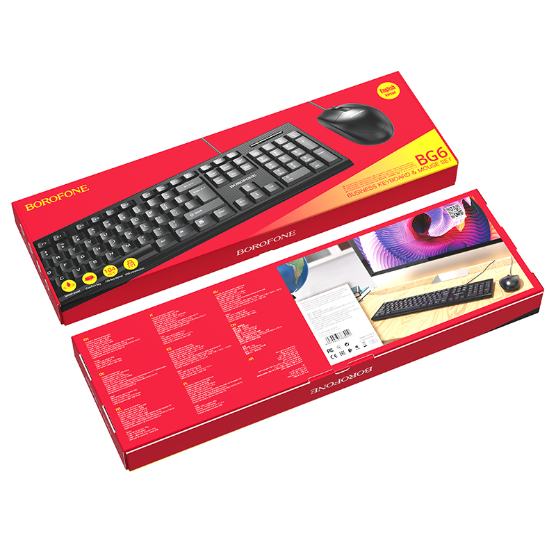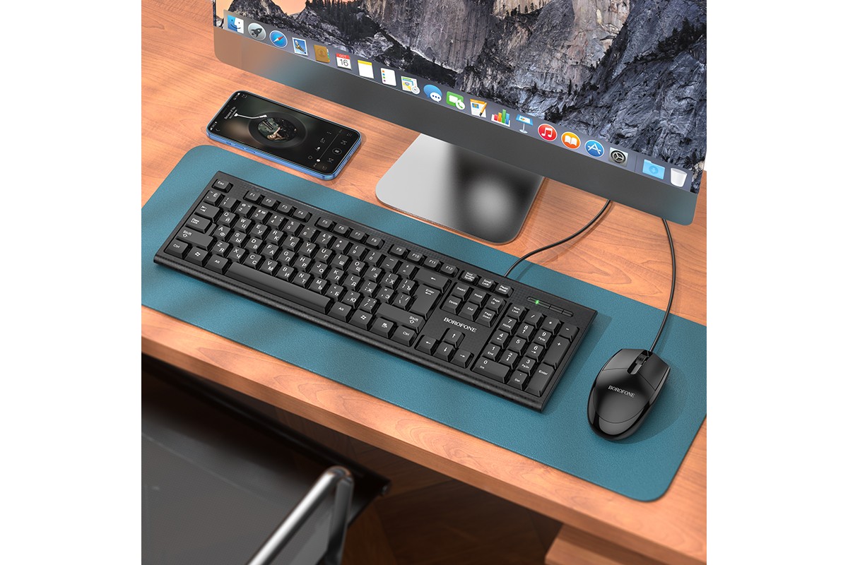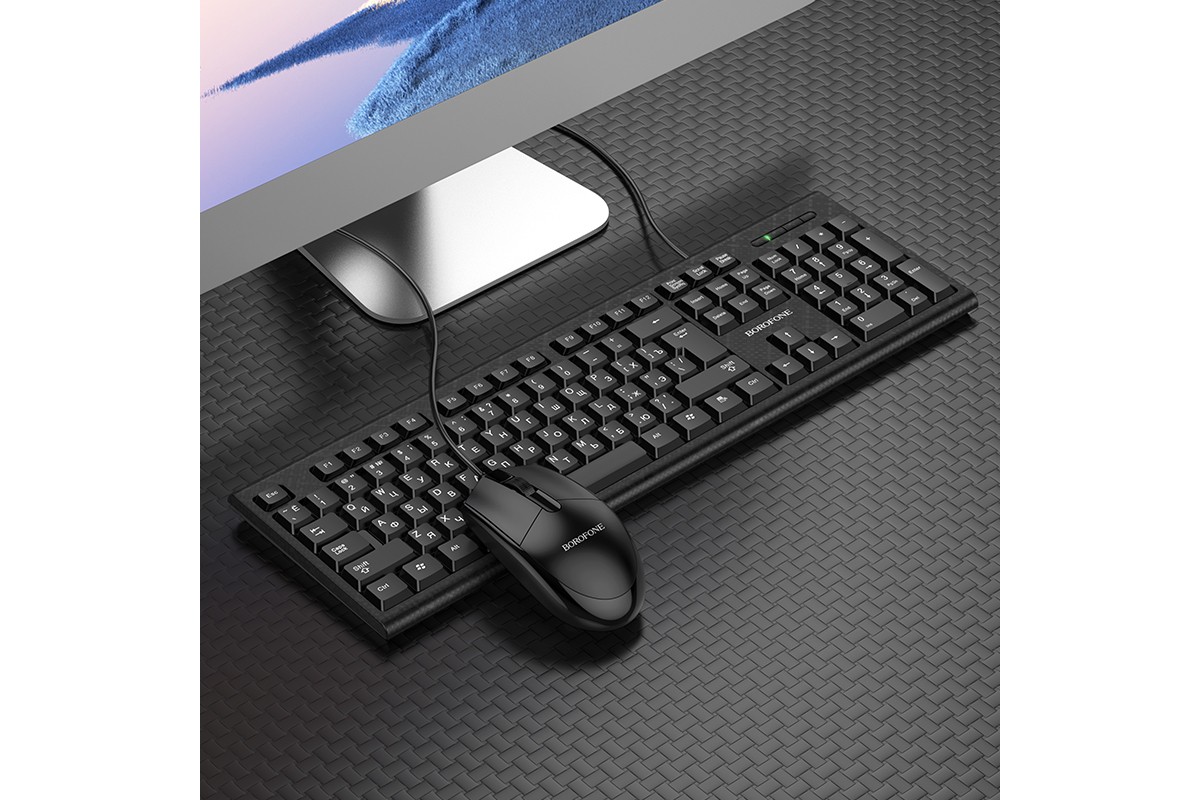 Компелект клавиатура проводная и мышь проводная BOROFONE BG6, черный