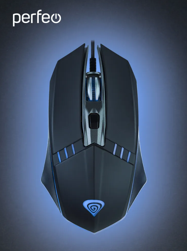 Мышь компьютерная проводная игровая Perfeo Game с RGB подсветкой (USB, 4 кнопки, 1400 DPI, 1.5 метра), черная